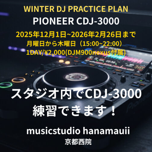 最近定番となりつつあるCDJ3000を使って練習できるこの機会、是非ミュージックスタジオハナマウイにてご予約をお待ちしております!